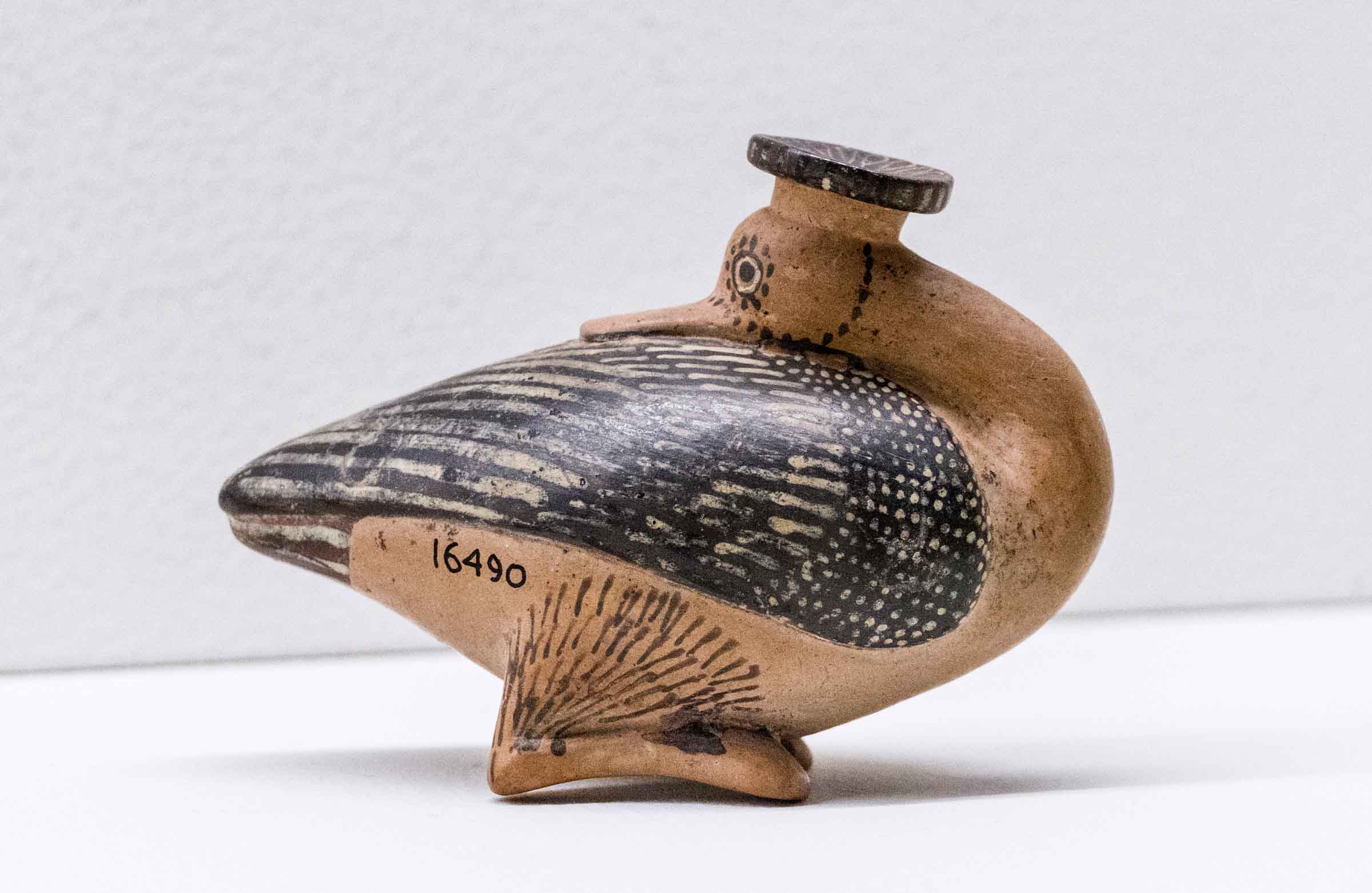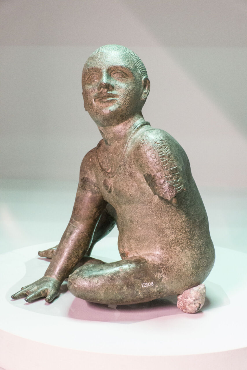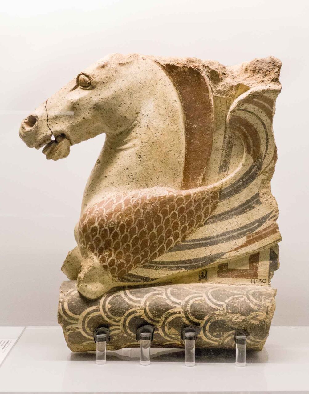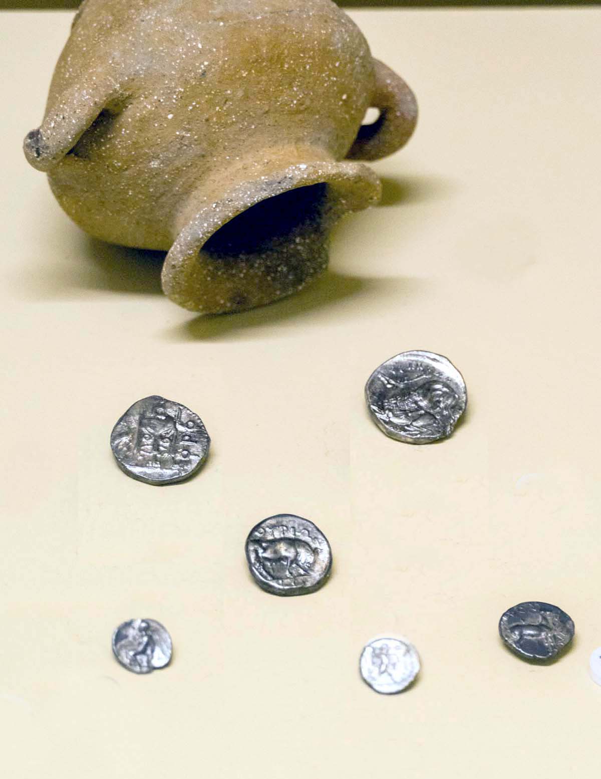 Il territorio di Chianciano, oltre alle terme, ha dato un contributo documentale archeologico interessantinssimo – ricordiamo la tomba affrescata della “Quadriga infernale”. In mostra, da una sepoltura del VII sec. a. C., in migliaia di pezzi, un urna, che dopo anni di paziente restauro ricostruttivo– un eccellenza tutta italiana -, è un unicum: corpo e coperchio ornati da grifoni e “uomini grifoni” che rimandano a modelli iconografici che ritroviamo in tempi molto antichi in Anatolia. Deliziose le urne cinerarie “a canopo”; grandiose in terracotta dipinta le decorazioni dei tetti non solo di templi ma anche per residenze di “principi” da Murlo.