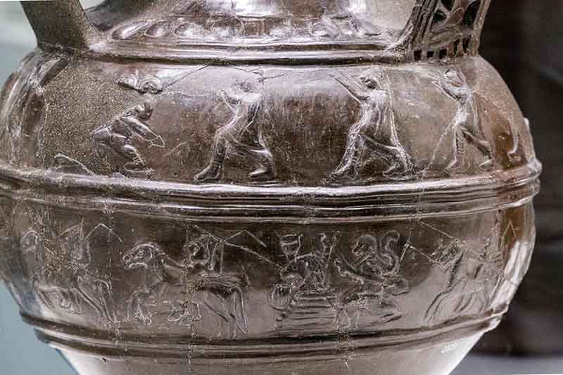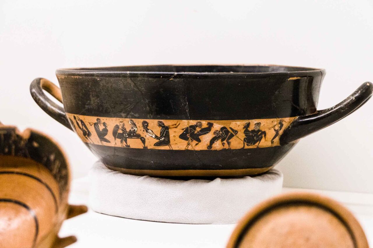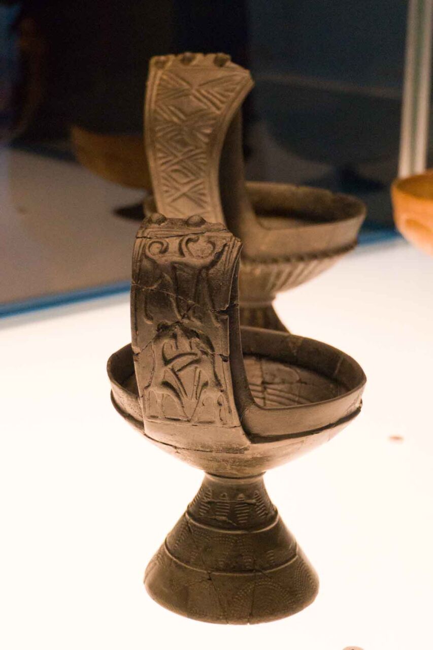 Quando si pensa agli etruschi viene da pensare al bucchero, una tecnica di cottura ceramica che permetteva di realizza pezzi che si assimilavano per colore nero e lucentezza al bronzo, che in oriente era già diffusissimo nella realizzazione di oggetti come vasi, coppe, ecc. Ma accanto a tale produzione ci fu anche l’uso della ceramica per realizzare coppi per tetti, artefisse e manufatti spesso coloratissimi che ornavano templi e case delle classi più abbienti. Vi erano ceramiche per i servizi da cucina e mensa quotidiana ma quelle che stupiscono era i grandi servizi da parata per il convivio – il momento in cui si banchettava e libava, al suono della musica, in compagnia di invitati o congiunti, per onore degli ospiti importanti, per consolidare rapporti politico-economici od onorare defunti.