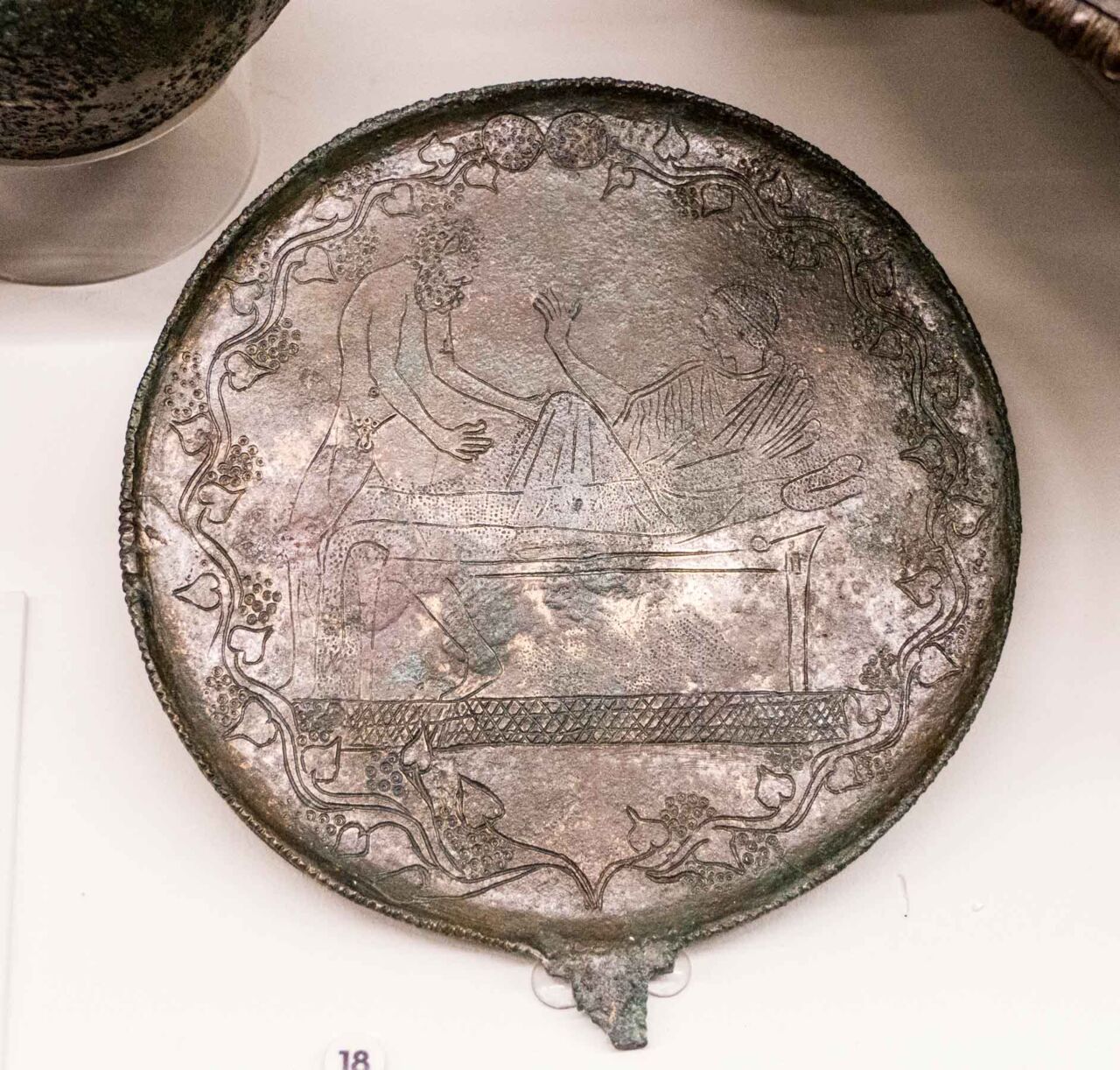 In questa sepoltura evidentemente di una personalità di altissimo rango, per la natura del terreno molto umido, si sono conservati splendidamente gli arredi lignei dell’ipogeo che accoglieva i resti del defunto: seggio, poggia piedi per l’urna cineraria “seduta su un seggio”, un tavolino delizioso per il banchetto, un appendi tazze per simposio tutti in legno scolpito, oltre ad altri oggetti per uso domestico.