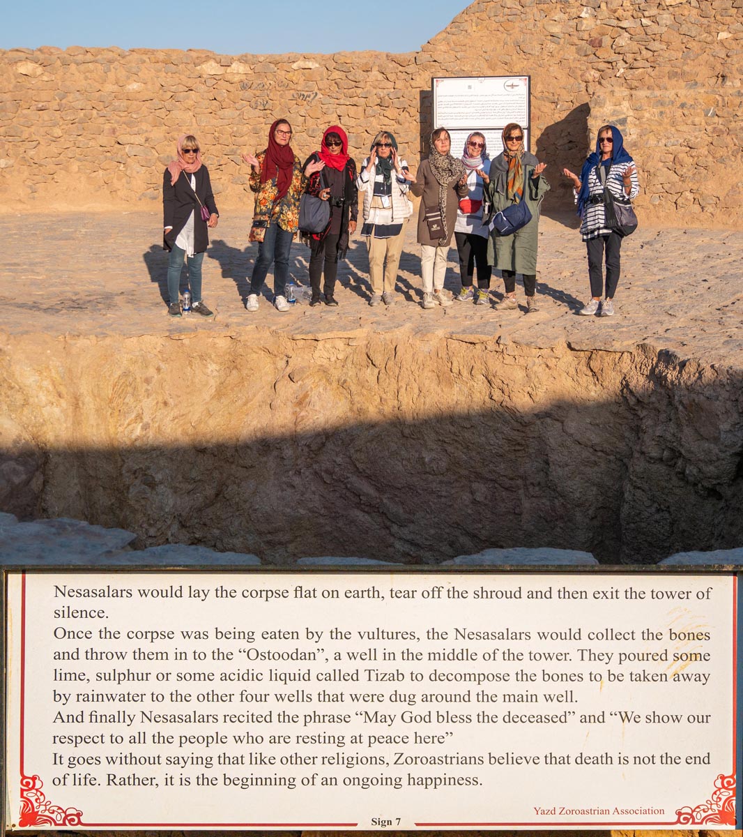 Tutto ciò che riguarda la morte è contaminante, in particolare la salma di una persona retta, perché rappresenta una grande vittoria del male. Ecco perchè essa viene esposta agli avvoltoi: ciò che ne resta viene poi gettato, da persone addette a tale rito, in una conca al centro delle Torri del Silenzio e coperto con sabbia e carbone; i parenti non assistono al rito ma restano lontani per non rischiare di esser contaminati dal Male.