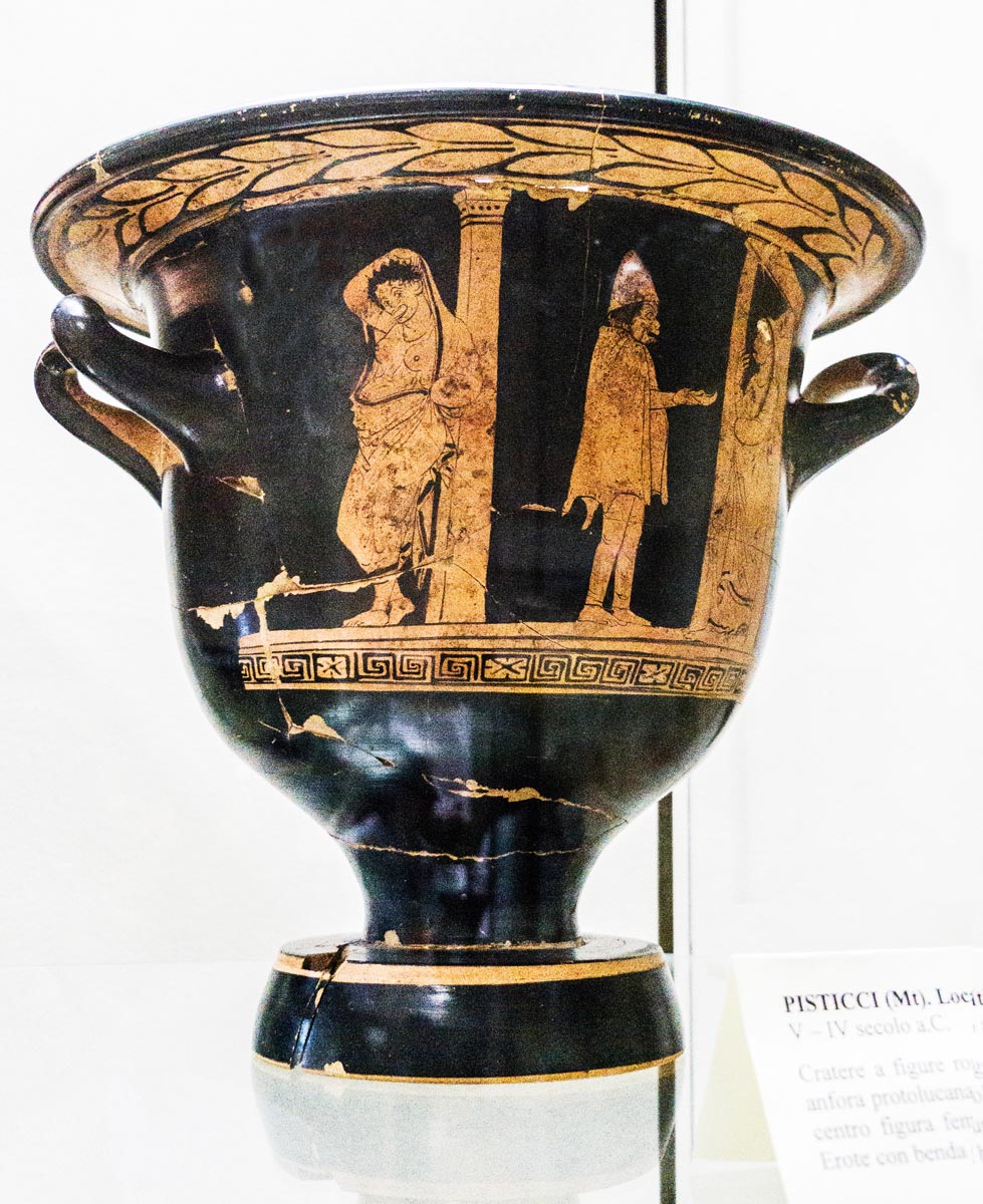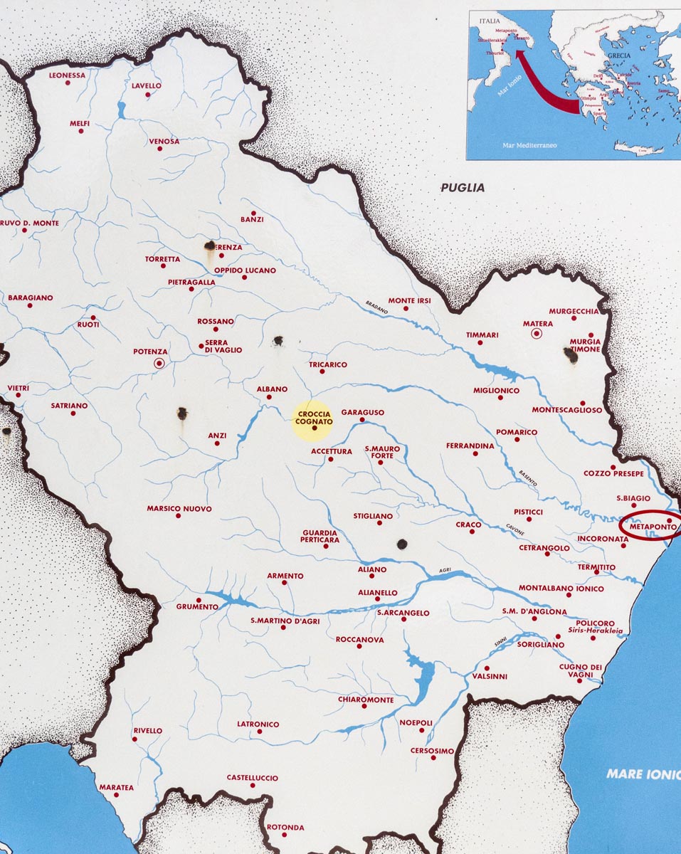 In sostanza il cuore della Magna Grecia: qui furono insediati centri dei coloni Greci che stabilirono fondamentali nodi per commerci nel mar Ionio e con interno, grazie alle vie di comunicazione fluviali che facilitarono loro la penetrazione verso il centro della Lucania fin dal VII sec. a. C.; così incontrarono le popolazioni Enotrie autoctone, che avevano un forte senso di appartenenza al proprio territorio ed erano valenti combattenti. Alla fine la cultura e forza commerciale greca prevalse anche se molte delle ancestrali radicate tradizioni popolari rimasero nella produzione ceramica e nei riti cultuali e di inumazione.