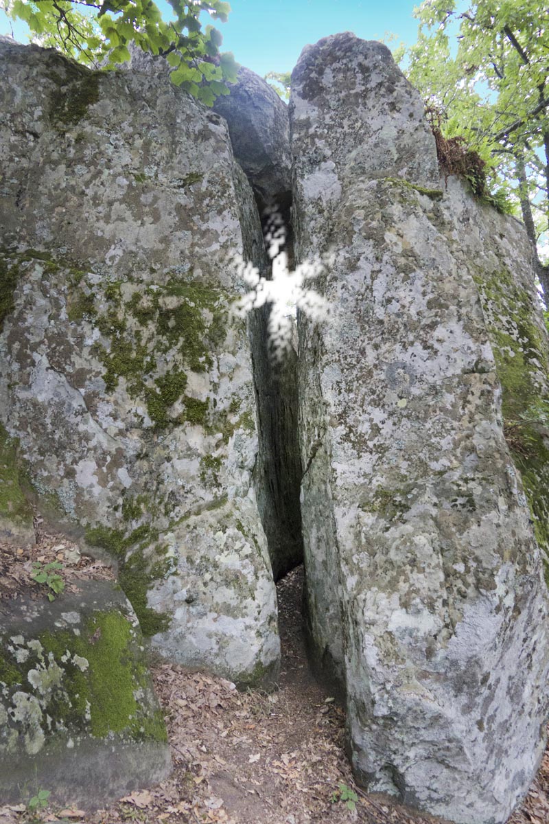 Qui solitario nel verde, tutto il nostro gruppo ha attraversato il bosco di querce, lungo sentieri dove cinghiali e caprioli avevano smosso il terreno, per giungere al…. panorama mozzafiato di una valle tra le Dolomiti Lucane avvolta dalla bruma. In un piccolo pianoro vi emerge la Pietra della Mola in cui le forze geologiche hanno prodotto una fenditura che, ai solstizi, un raggio di sole penetra per poi colpire un altro punto della formazione creando così una meridiana solare naturale.