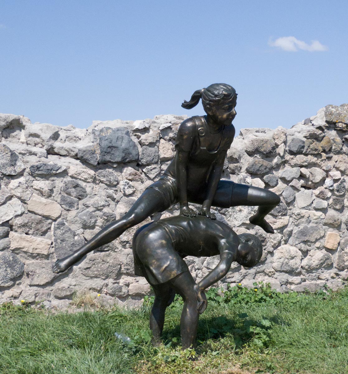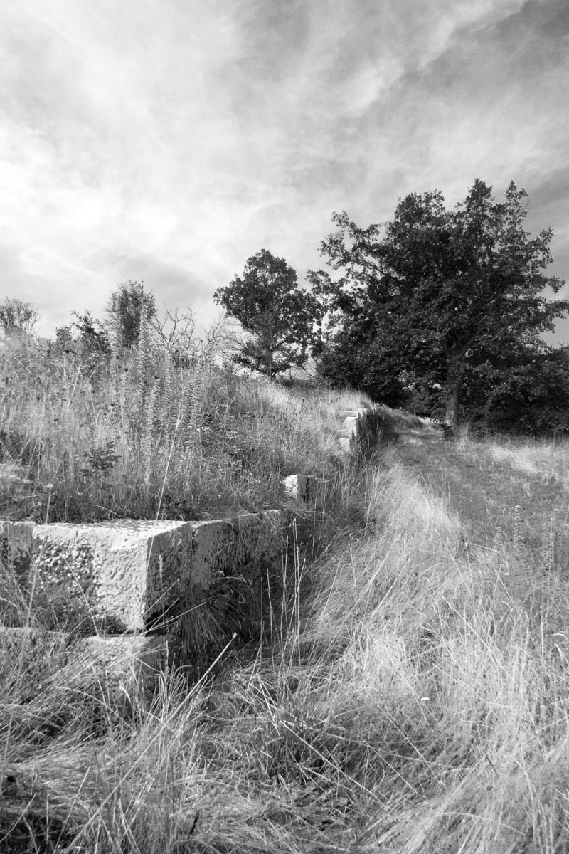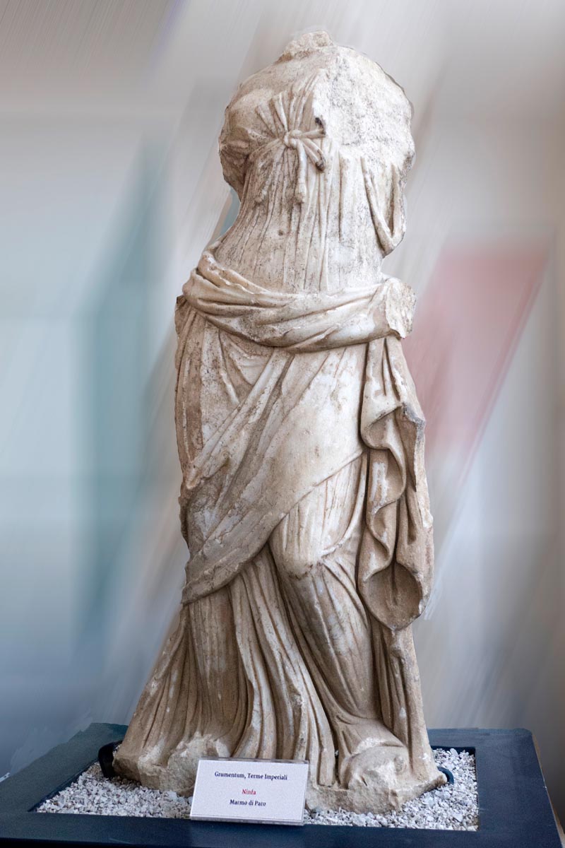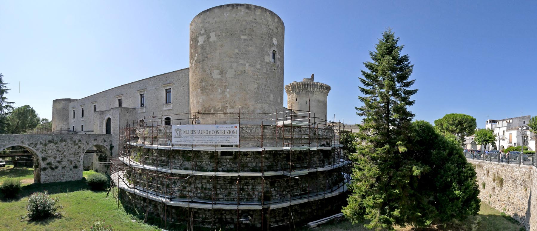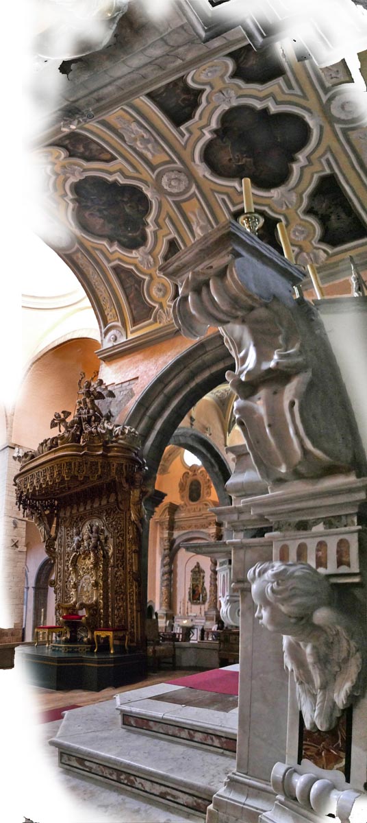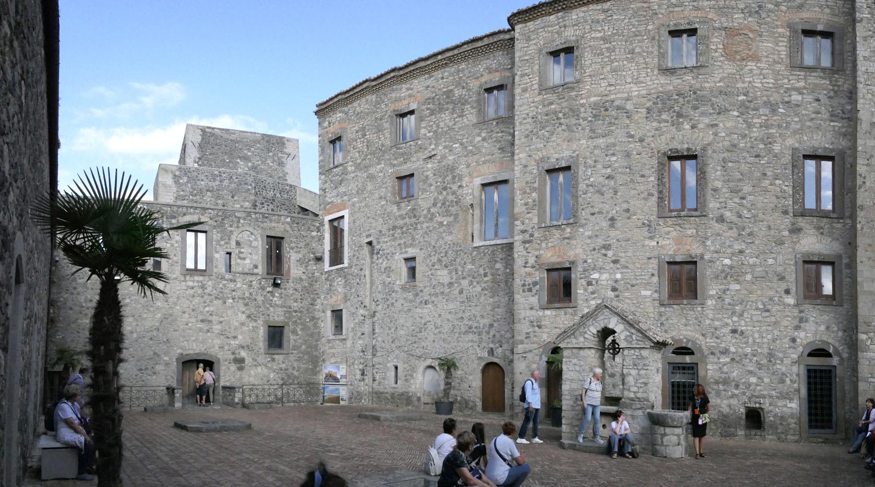 Costruzioni si sovrapposero ad altre, spesso riutilizzando marmi, statue, lapidi, elementi architettonici di edifici preesistenti soprattutto del periodo romano, che incastonano i muri dei chiese ed edifici pubblici e privati della cittadina contemporanea: girando per le vie e scalinate fa gioco scoprire ed indovinare cosa e a quale scopo una decorazione era stata originariamente realizzata!….furono anche usati per l’edificazione, presso l’attuale area archeologica romana, solo in parte esplorata, di una complesso monastico benedettino che però, per le alterne vicende della storia, non trovò completamento; così l’aggirarsi tra pareti, colonne, absidi solo abbozzate, archi ed architravi che non reggono peso se non del cielo, evoca surreali suggestioni!