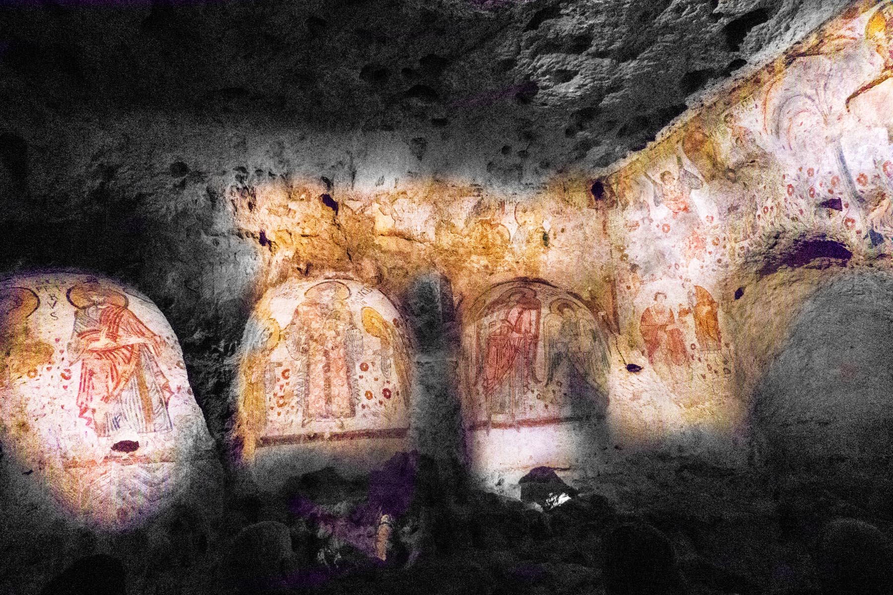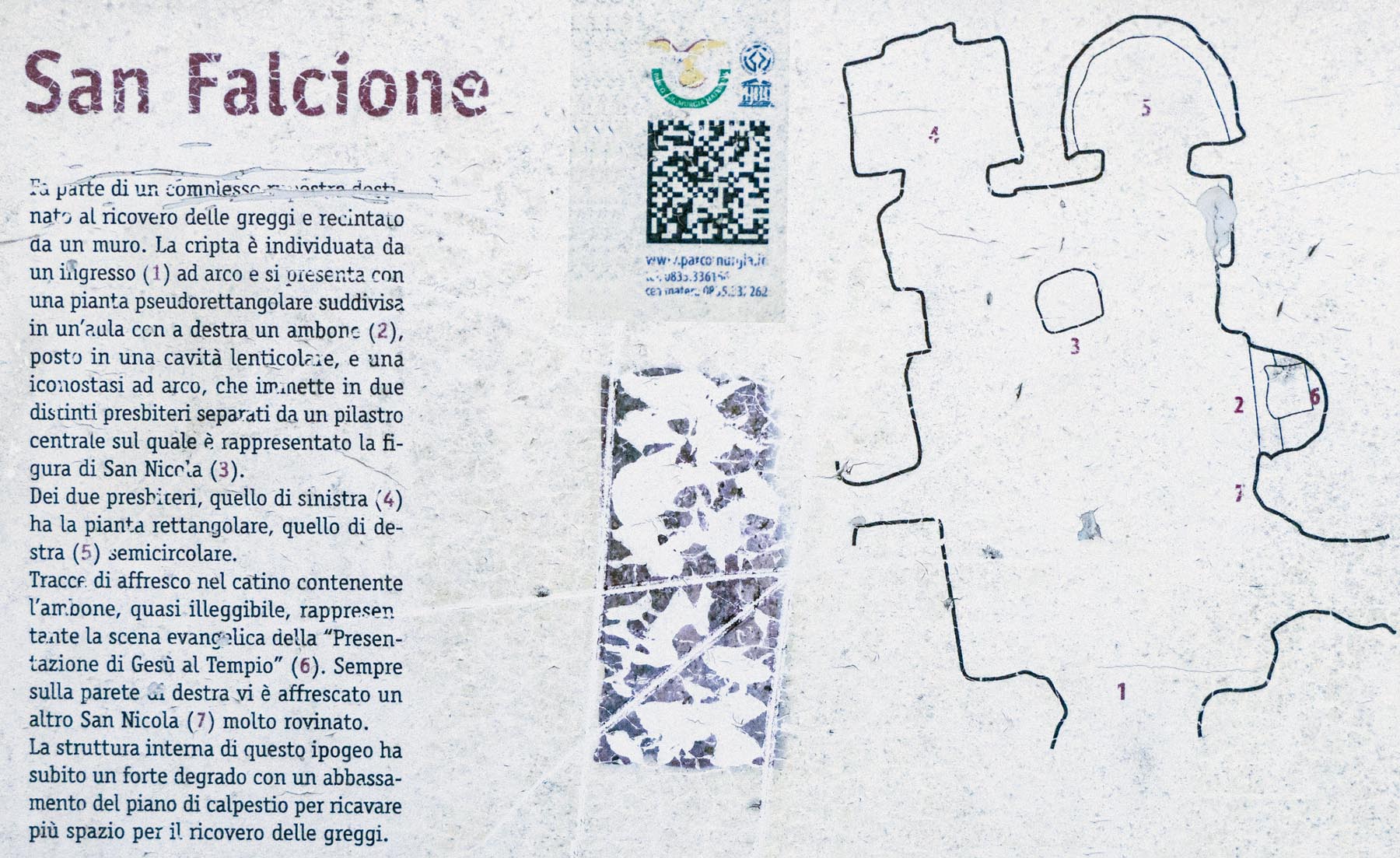I decori di queste cappelle, realizzati da anonimi artisti, forse anche di passaggio, risentirono delle tradizioni iconografiche bizantine; essi seppero affrescare, con la freschezza di una “popart” antelitteram, i racconti della Bibbia. Ed ogni aggregato di grotte, come San Falcione o La Grotta del Peccato, era una gara quasi ad aver santi e madonne, decori e colori, più ricchi e originali ….come ancora oggi nei paesi della zona, tra una “parrocchia e l’altra”!!!