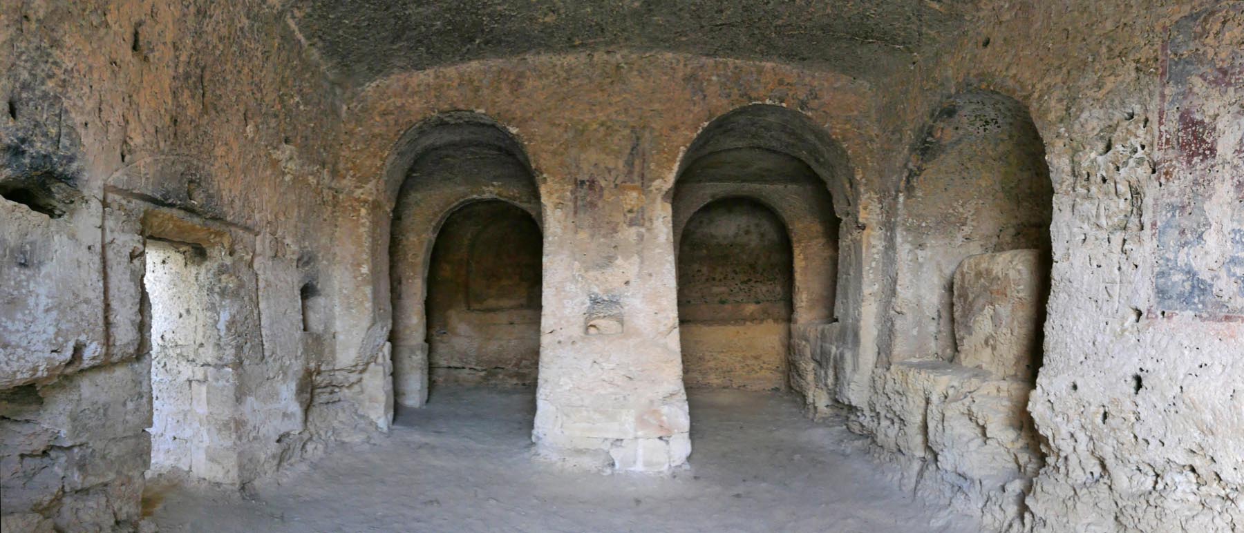 Intorno alla gravina e nel circondario di Matera si alternano aree pianeggianti e colline la cui natura geologica è caratterizzata da strati sedimentari alternati di detriti vulcanici e depositi di origine alluvionale e marina. La diversa costituzione dei terreni ha così generato non solo varietà di habitat e paesaggi, culture a semenza, vitivinicole, oliveti e pascoli, ma anche ha dato la possibilità all’uomo fin da tempi antichi di realizzare ricoveri in anfratti e grotte naturali, poi spesso modificati a seconda delle necessità: abitativa, ricovero di bestiame, magazzini, frantoi, …, luoghi di culto. Questi ultimi, spesso arroccati in alto, dopo la caduta dell’impero romano e le ondate di invasioni da terra e mare da pare di genti ostili, divennero luogo per comunità cristiane di riunione, preghiera e catechesi.