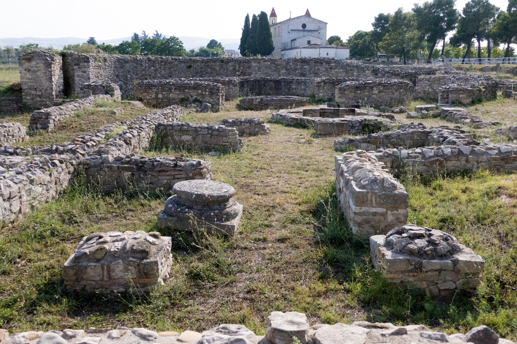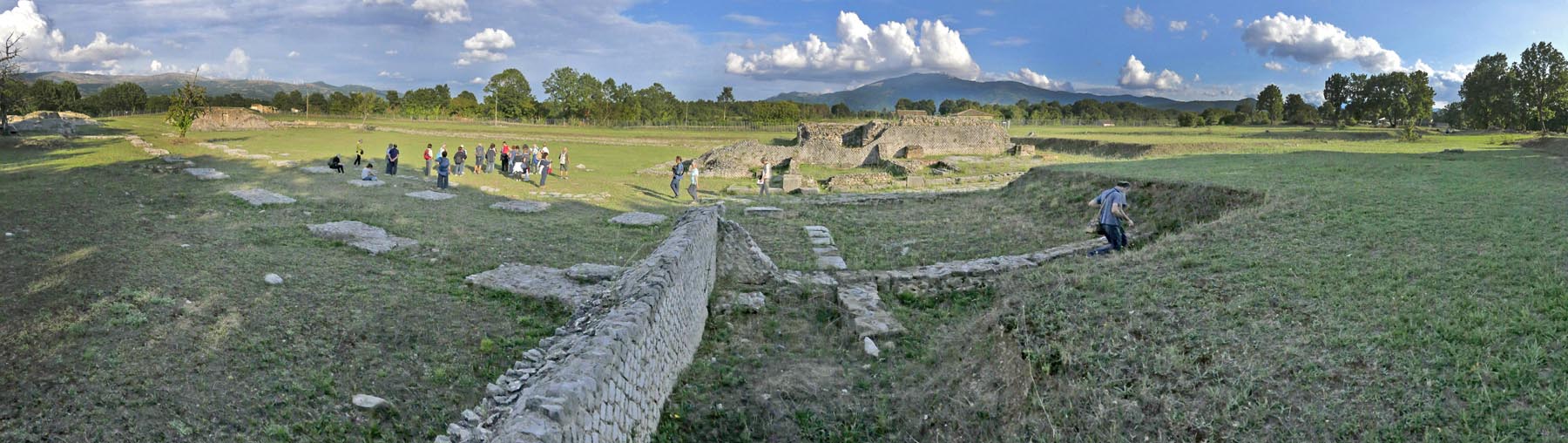 Sito che ebbe importante valenza in epoca romana, della quale ci restano importanti vestigia, tra cui teatro, foro, templi, anfiteatro e edilizia residenziale. Già nel periodo imperiale l’insediamento, l’importanza rappresentativa di limes, era sparita: Roma non doveva dimostrare la propria potenza alle bellicose popolazioni locali; ma restò comunque località di riferimento ancora per i ricchi proprietari terrieri della zona, i cui terreni erano spesso stati dati come ricompensa coloro che avevano contribuito alla grandezza della romanità.