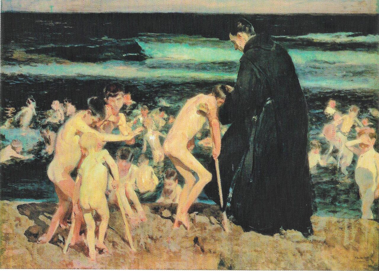 Joaquin Sorolla nasce a Valencia nel 1863; rimasto orfano giovanissimo ha la fortuna di veder riconosciuto il proprio talento e viene iscritto alla scuola di belle arti dove immediamente gli si concede di partecipare a concorsi per borse di studio; con una di esse potrà recarsi a Roma e, appena ventenne, si reca anche a Parigi, culla dell’impressionismo e crogiuolo delle avanguardie artistiche del suo tempo. Nella sua città d’origine aveva avuto un mecenate d’eccezione, un ricercato fotografo che gli dette ospitalità in locali presso il suo studio: il rapporto con la fotografia diverrà simbiotico della sua pittura accuendo una particolare sensibilità per le luci e le loro tonalità e ravvivando il gusto della inquadratura e della composizione rispetto alle regole accademiche della scuola spagnola contemporanea.Troverà un solo pittore tanto osannato da sottrargli l’attenzione europea: l’irruente e vulcanico Pablo Picasso.